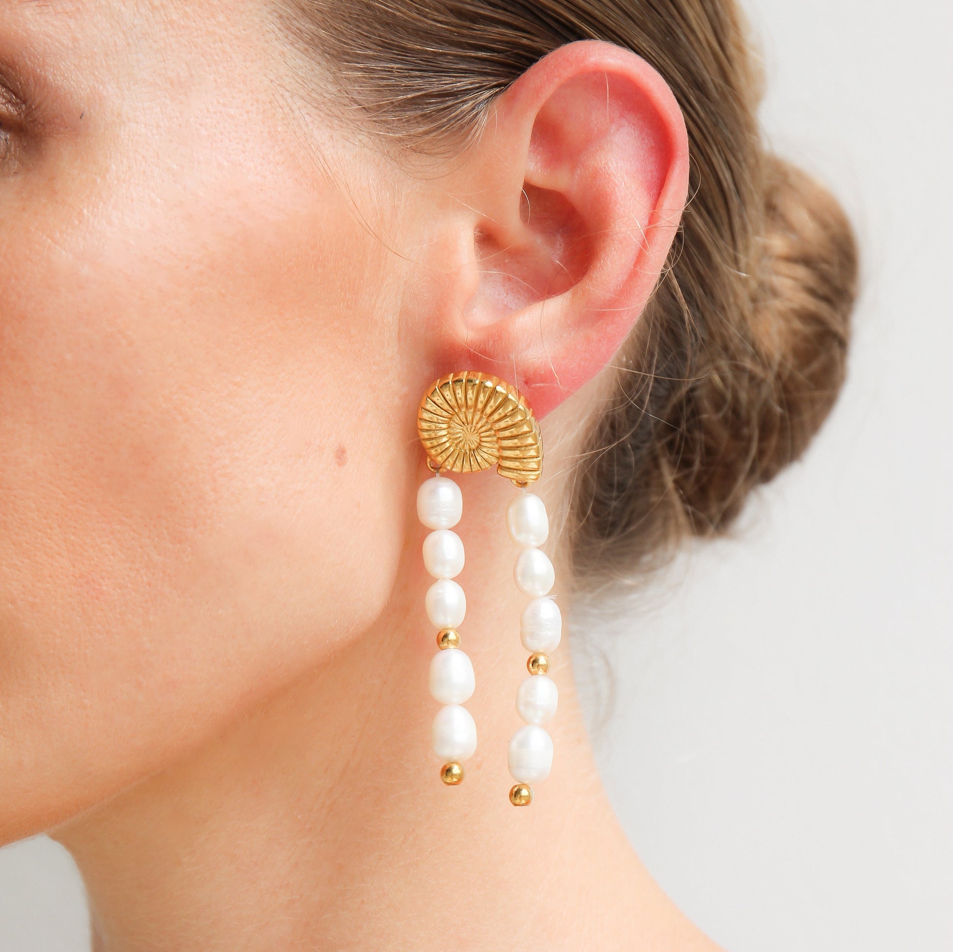 Beautifully crafted, these Conch Shell Pearl Drop Tassel Earrings will add a modern and elegant touch to any outfit.