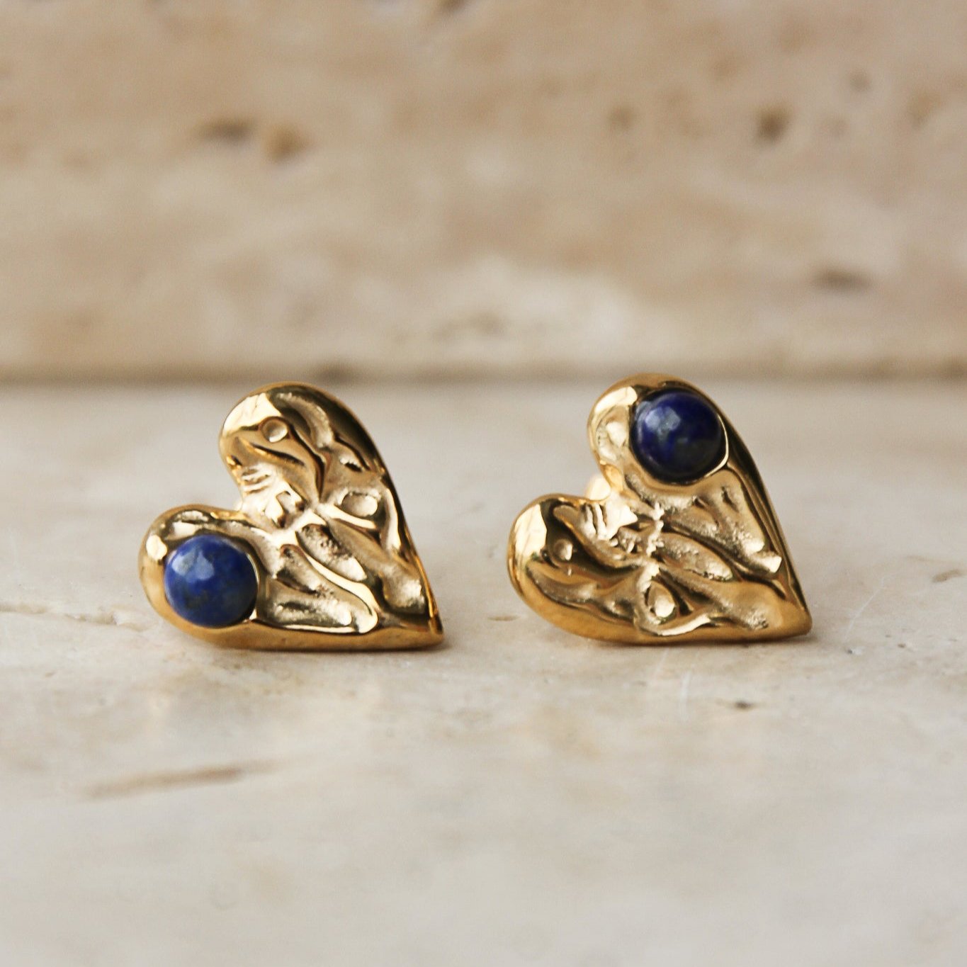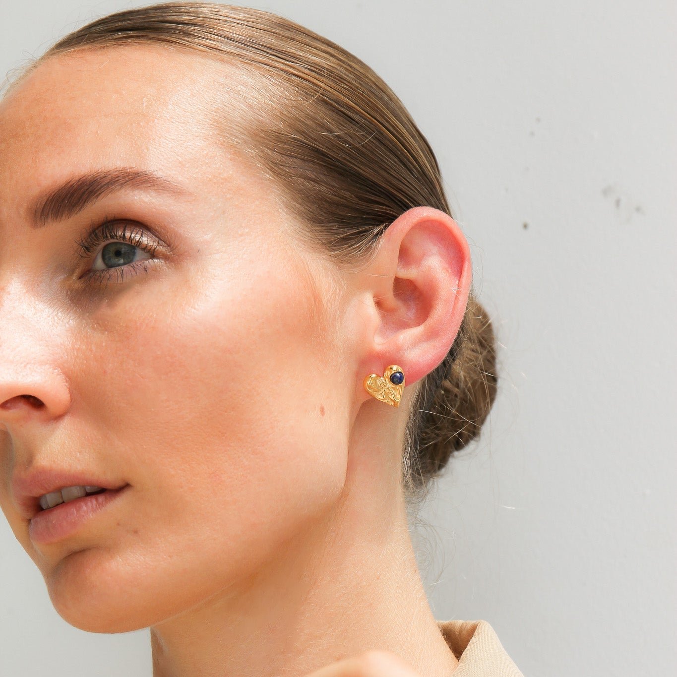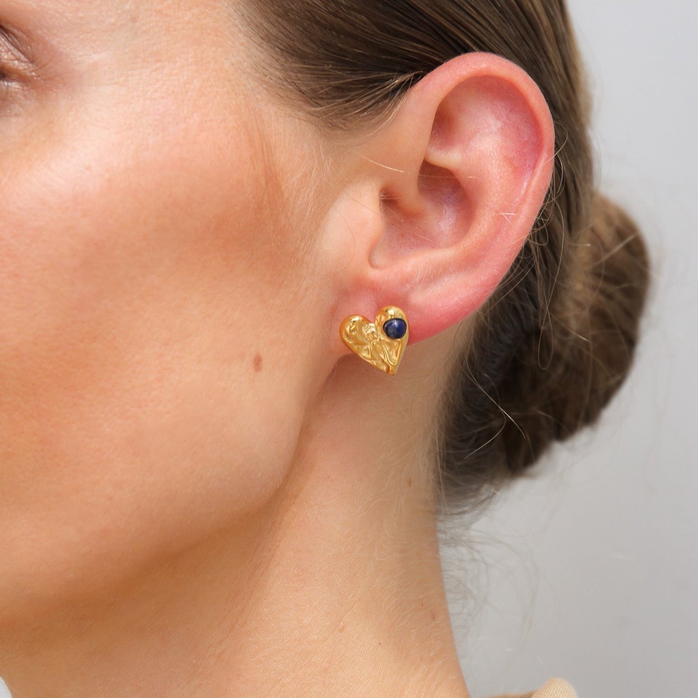 Tegan Rae - GOLD TEXTURED HEART STUD EARRINGS
