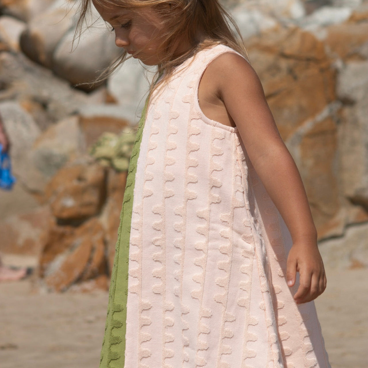 GROWN - Terry Towelling Flow Dress - Leaf/Peachy