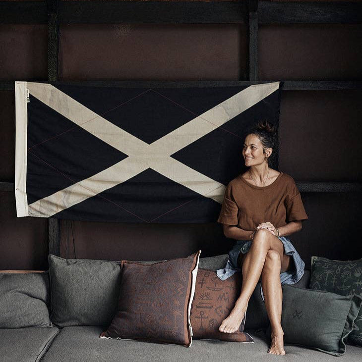 Inspired by the tracks we take on our journey, the Pathways cushion reminds us of the people and places we stumble on along the way. Each little custom-designed symbol represents our adventures and a few that are still on our bucket list.