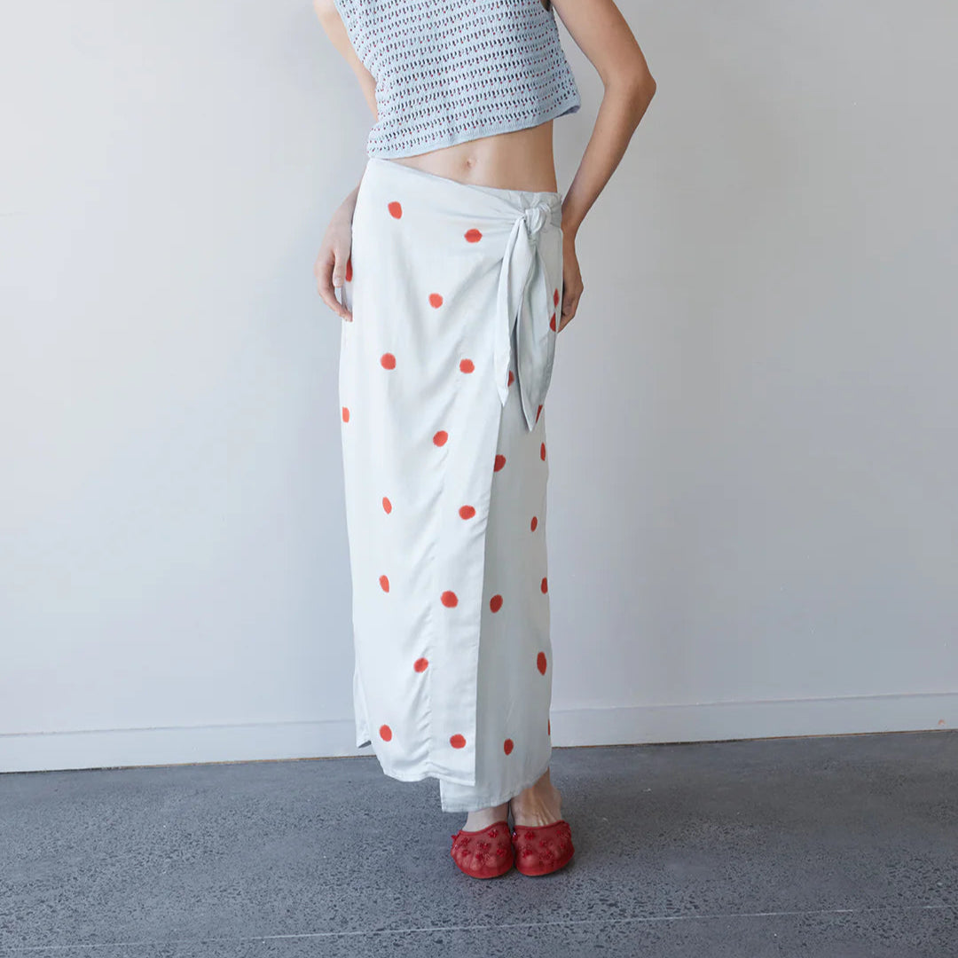 The Relic skirt is a new style from the Troppo collection. This style is a long, mid waisted wrap skirt. Featuring a front tie detail and elastic at back waist for ease and wearability. The Relic skirt was designed to be worn with the Beaded Cosmo crop.