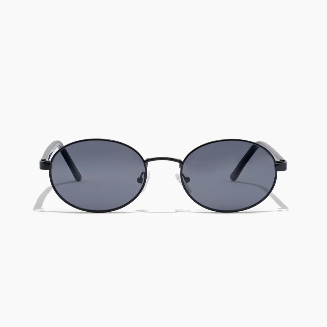 Signature Szade ; introducing FINCH, our newest oval frame from our luxe metal series. a timeless style that's always IN. with acetate temples and universally flattering round lenses this matte black sunglass is a modern must have.