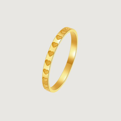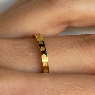 Ideal for stacking with other rings or wearing solo, this lightweight and dainty piece is perfect for everyday wear. It’s designed to be tarnish-free and hypoallergenic, ensuring that it remains comfortable and beautiful through daily use. The playful heart pattern adds a touch of personality and fun, making this ring a must-have in your collection.