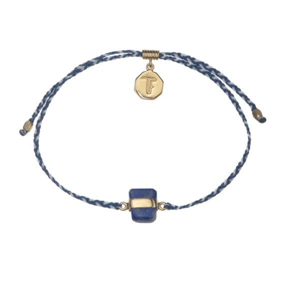 Tiger Frame - Lapis Lazuli, Crystal Bracelet, Blue & White Cord, Gold